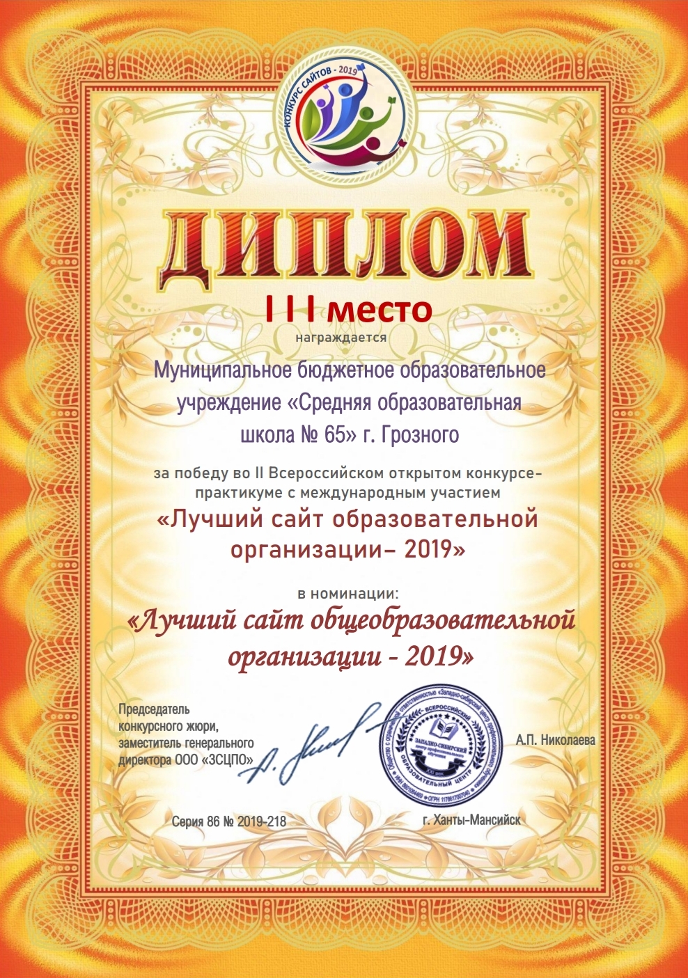 Муниципальное общеобразовательное учреждение "Средняя общеобразовательная школа №65" г. Грозного