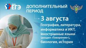 Начнется дополнительный период 3 августа с экзаменов по географии, литературе, информатике, биологии, истории и устной части ЕГЭ по иностранным языкам. На сдачу ЕГЭ по географии в этот день зарегистрировано 40 человек, на ЕГЭ по информатике – 173, по биологии – 484, по истории – 304, по литературе – 128. Сдавать устную часть ЕГЭ по английскому языку будут 356 человек, по немецкому – 23 человека, по французскому – 16, по испанскому – 5, по китайскому – 9 участников.