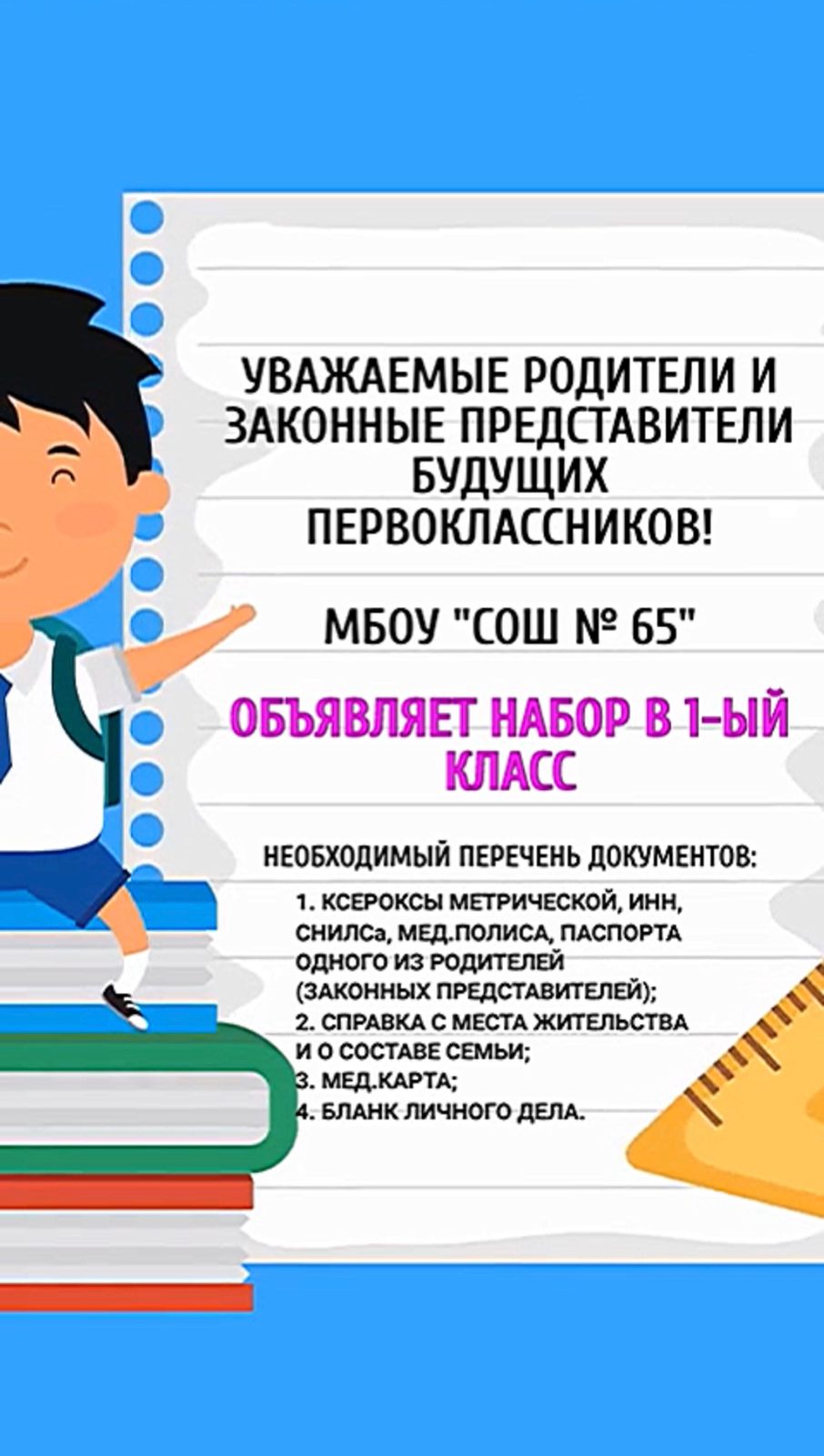 Объявлен прием в 1 класс