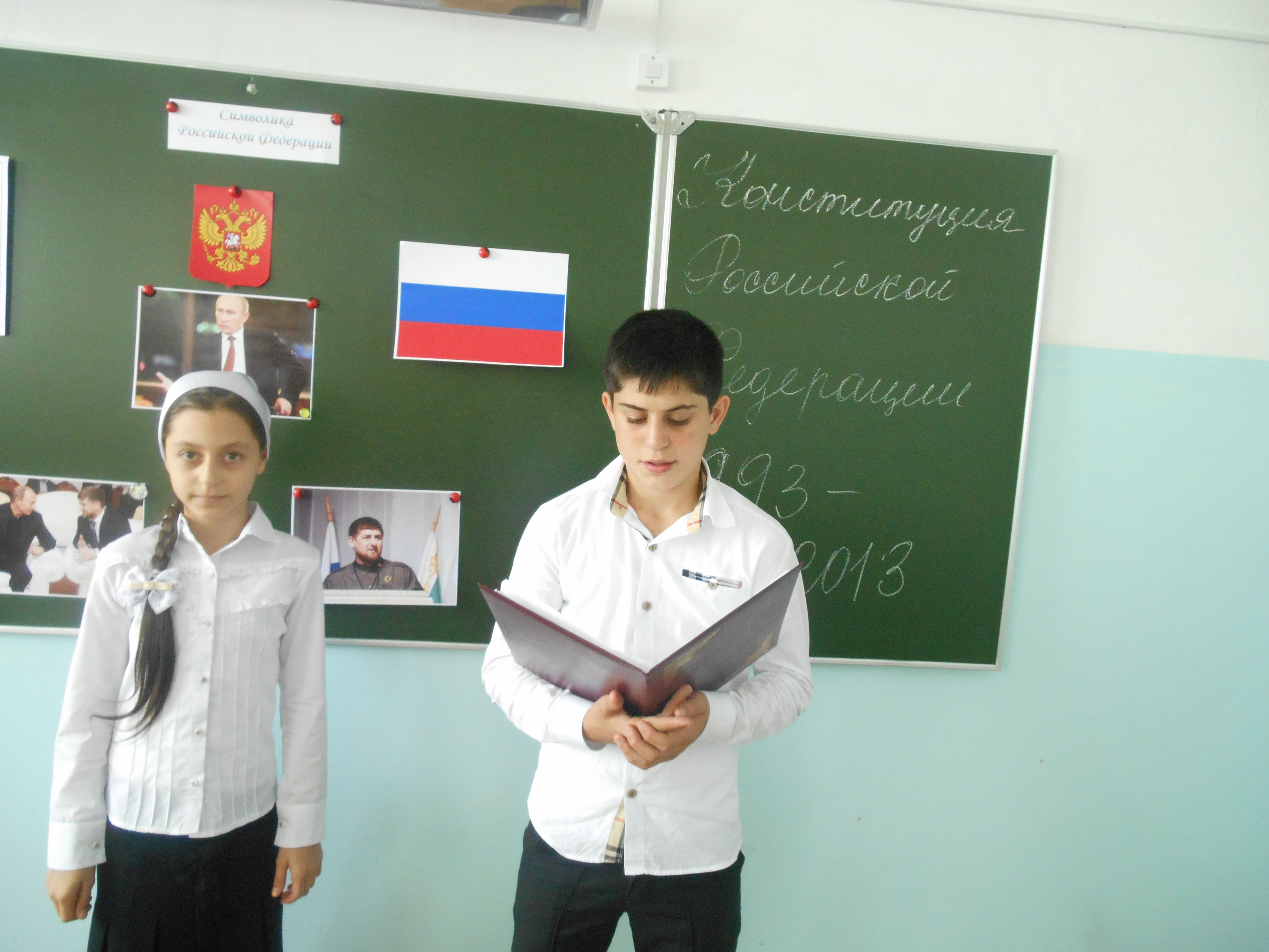 Департамента образования г. Грозного с 8 по 12 декабря 2014 года в школе прошли следующие мероприятия:1. Разработан и утвержден план мероприятий, приуроченных к празднованию Дня Конституции.2. Во всех классах прошли классные часы на данную тематику.3. Среди учащихся 10-11 классов проведен правовой брейн-ринг.4. Среди учащихся 8-9 классов проведен конкурс плакатов.5. В 7а классе прошел открытый классный час на тему «Конституция – основной Закон государства».