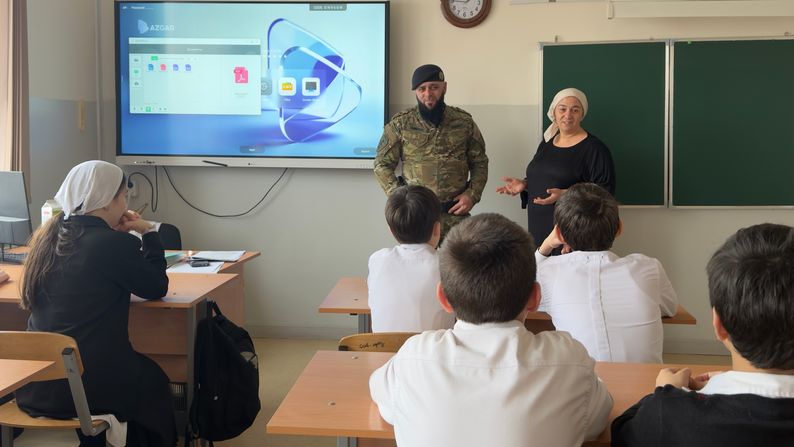 В МБОУ «СОШ №65» города Грозного состоялись «Уроки мужества» с участием приглашённого гостя — участника специальной военной операции (СВО) Даудова Абу-Бакара Хампашевича.