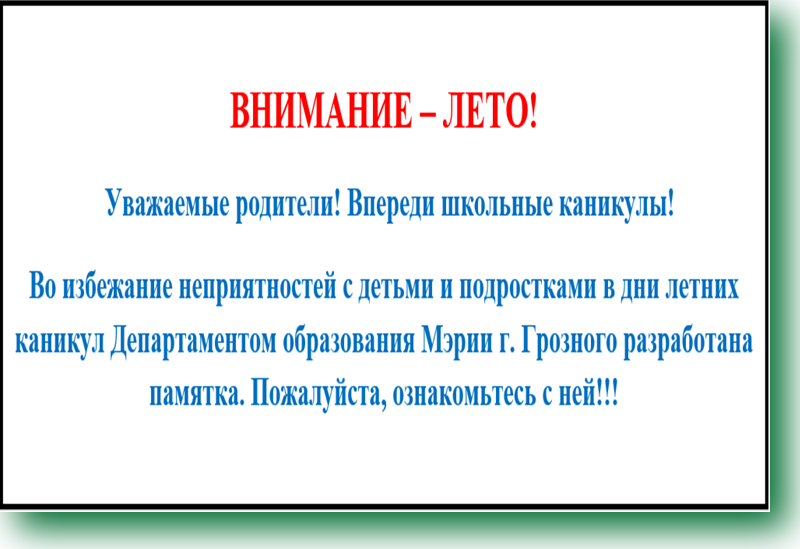 Летом, с началом каникул, наших детей подстерегает повышенная опасность на дорогах, у водоемов, в лесу, на игровых площадках, во дворах.